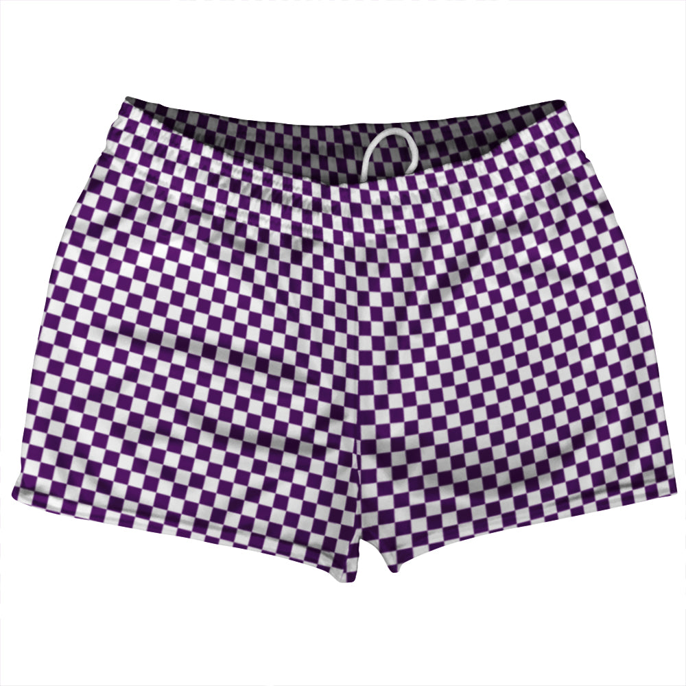 - Checkerboard Half Inch Purple Medium and White Shorty Short Gym Shorts 2.5" Inseam Made In USA