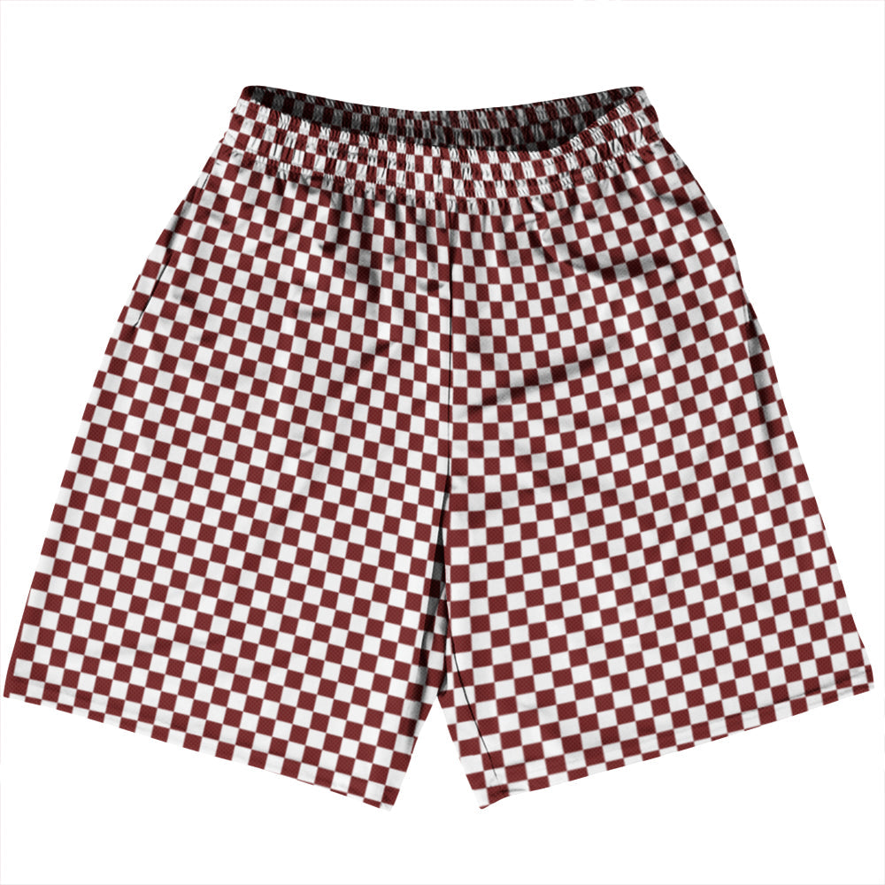 Checkerboard Half Inch Red Maroon and White Basketball Practice Shorts Made In USA