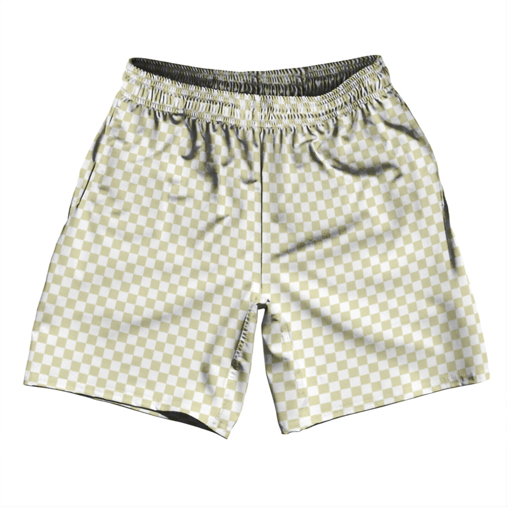 - Checkerboard Half Inch Vegas Gold and White Soccer Shorts Made In USA
