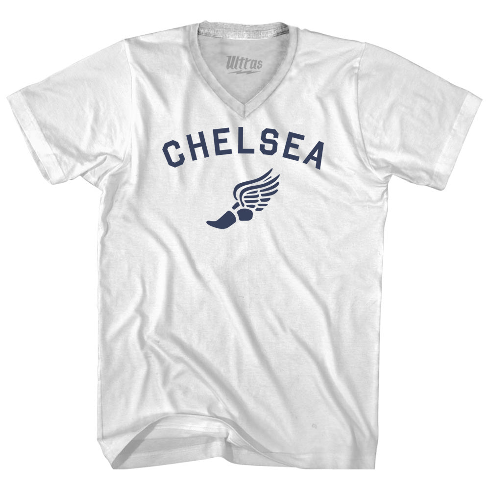 - Chelsea Running Track Winged Foot-Adult Cotton V-neck T-shirt