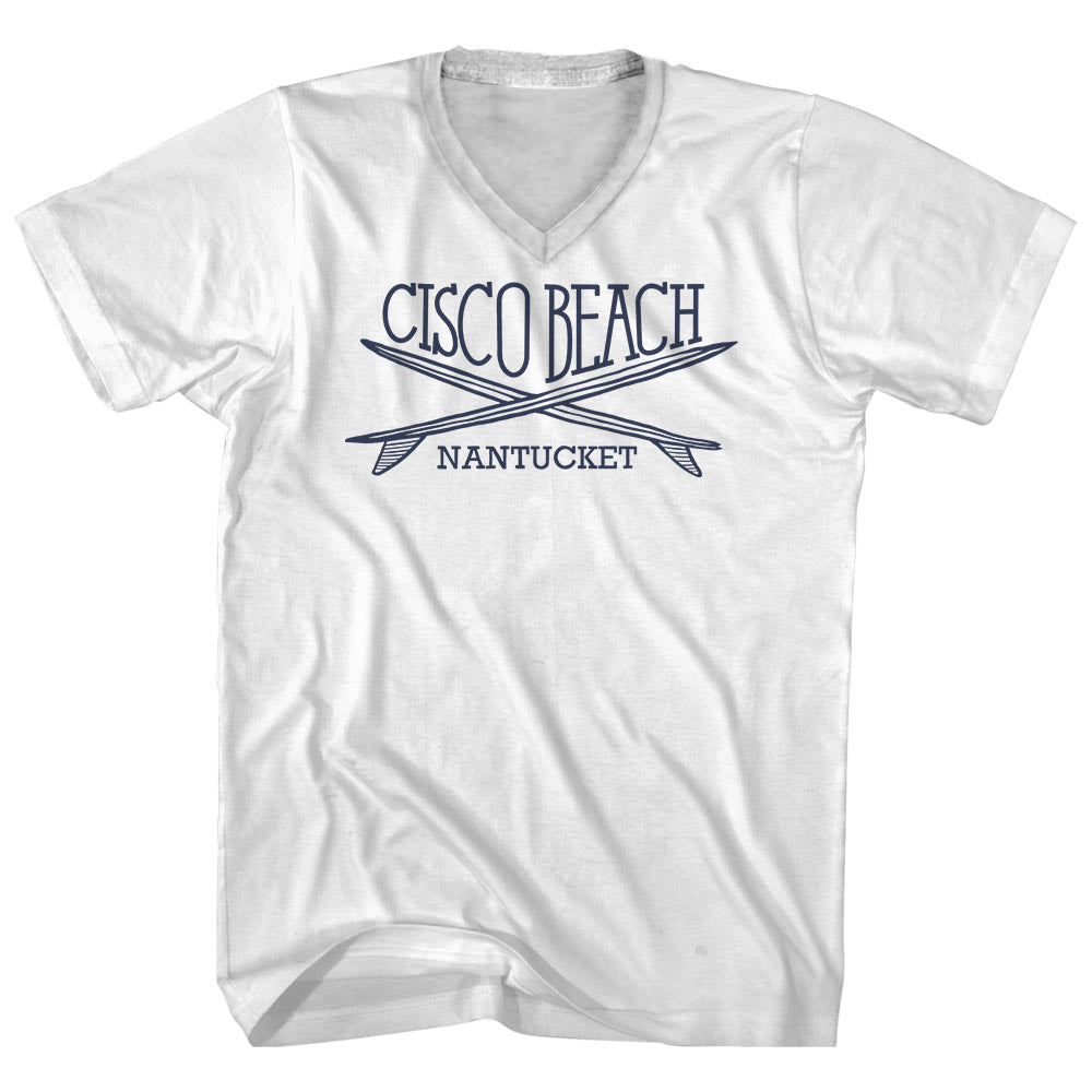- Cisco Beach Surf Break Crossed Surf Board Surfing Destination Adult Cotton V-Neck T-Shirt