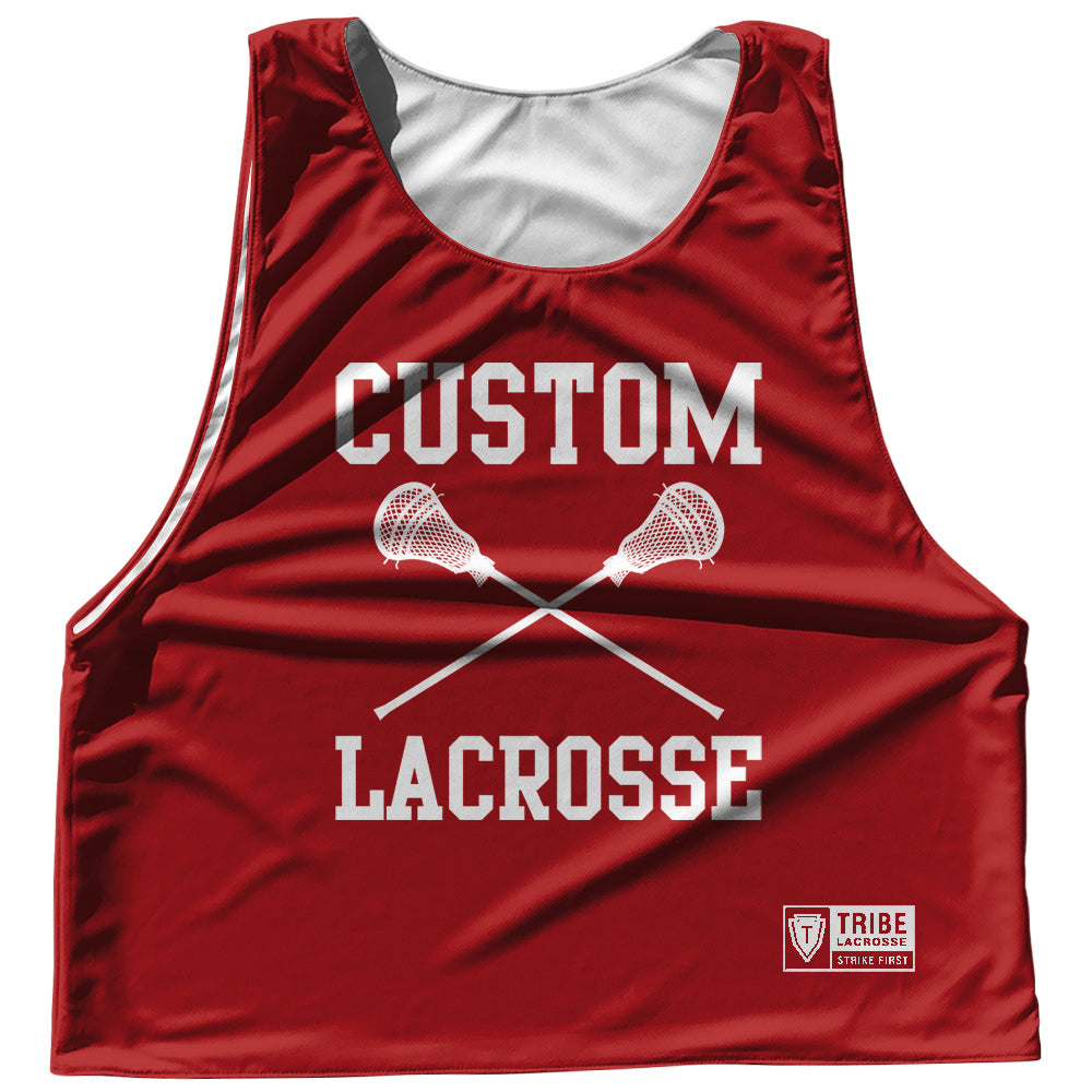 - Custom Lacrosse Red Dark and White Reversible Lacrosse Pinnie