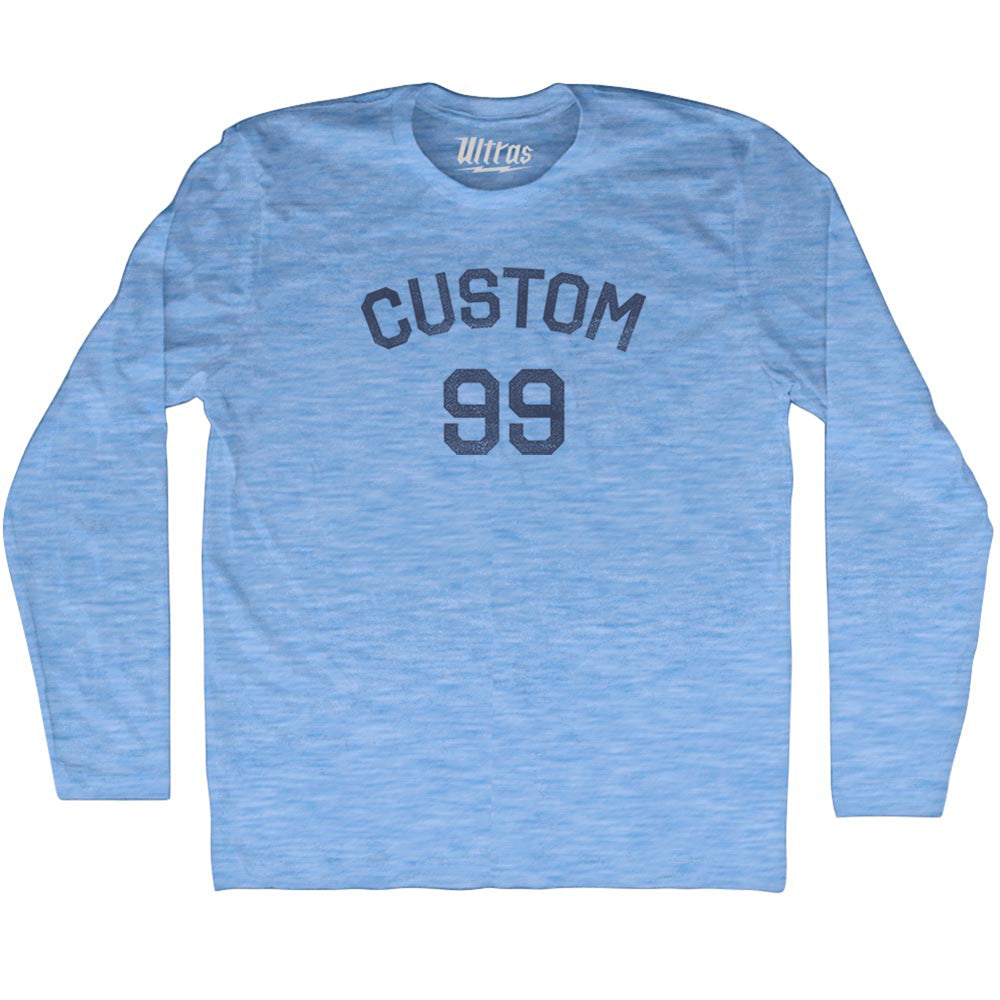 Custom Text Over Custom Number Adult Tri-Blend Long Sleeve T-shirt