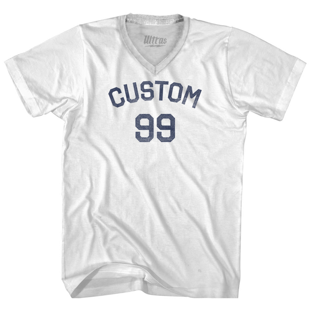 • Custom Text Over Custom Number Adult Tri-Blend V-neck T-shirt