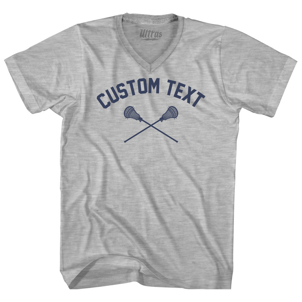 Custom Text Crossed Lacrosse Sticks Adult Cotton V-neck T-shirt