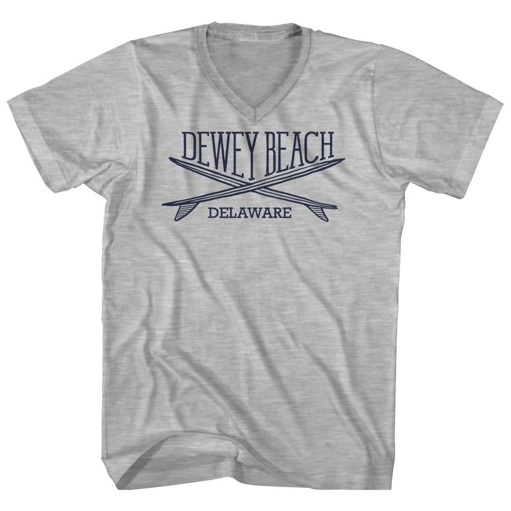 - Dewey Beach Surf Break Crossed Surf Board Surfing Destination Adult Cotton V-Neck T-Shirt