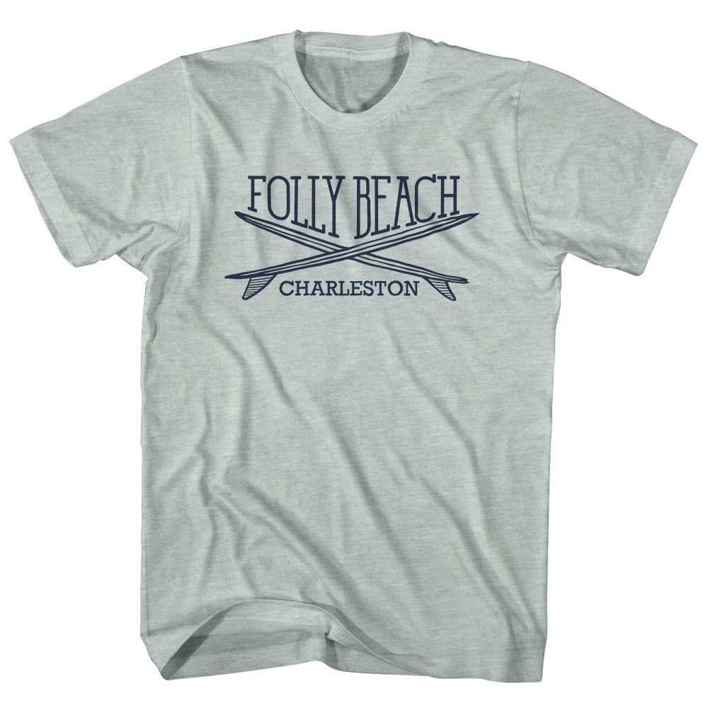 • Folly Beach Surf Break Crossed Surf Board Surfing Destination Adult Tri-Blend T-Shirt