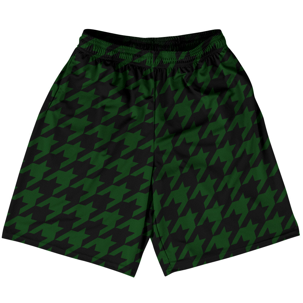 - Green Forest And Black Houndstooth Basketball Practice Shorts Made In USA