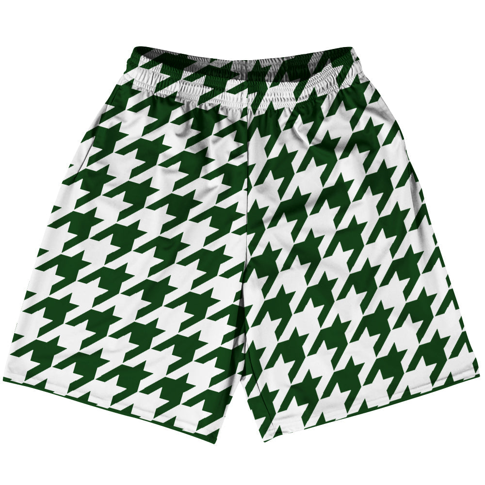 - Green Forest And White Houndstooth Lacrosse Shorts Made In USA