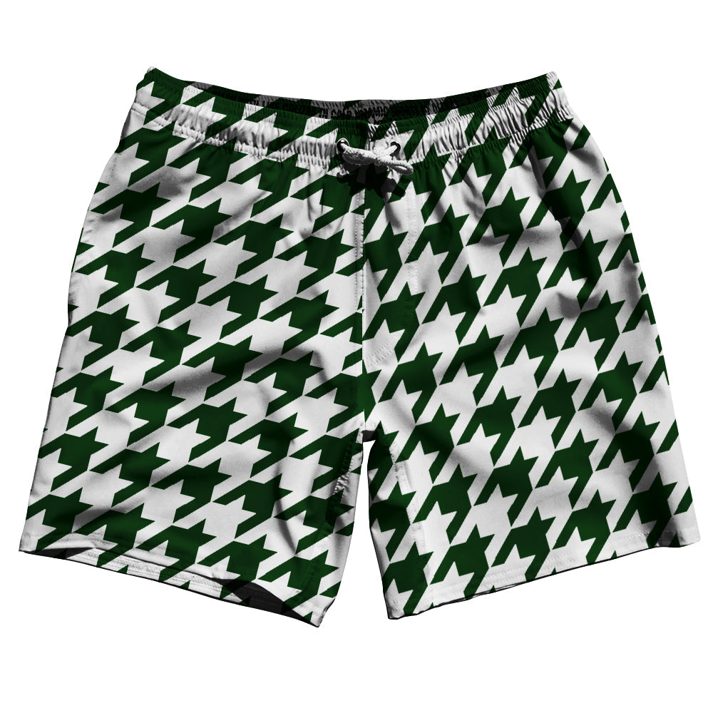 Green Forest And White Houndstooth Swim Shorts 7" Made In USA