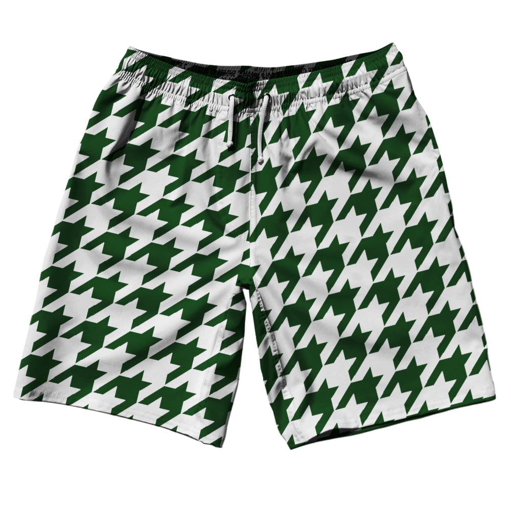 Green Hunter And White Houndstooth 10" Swim Shorts Made In USA