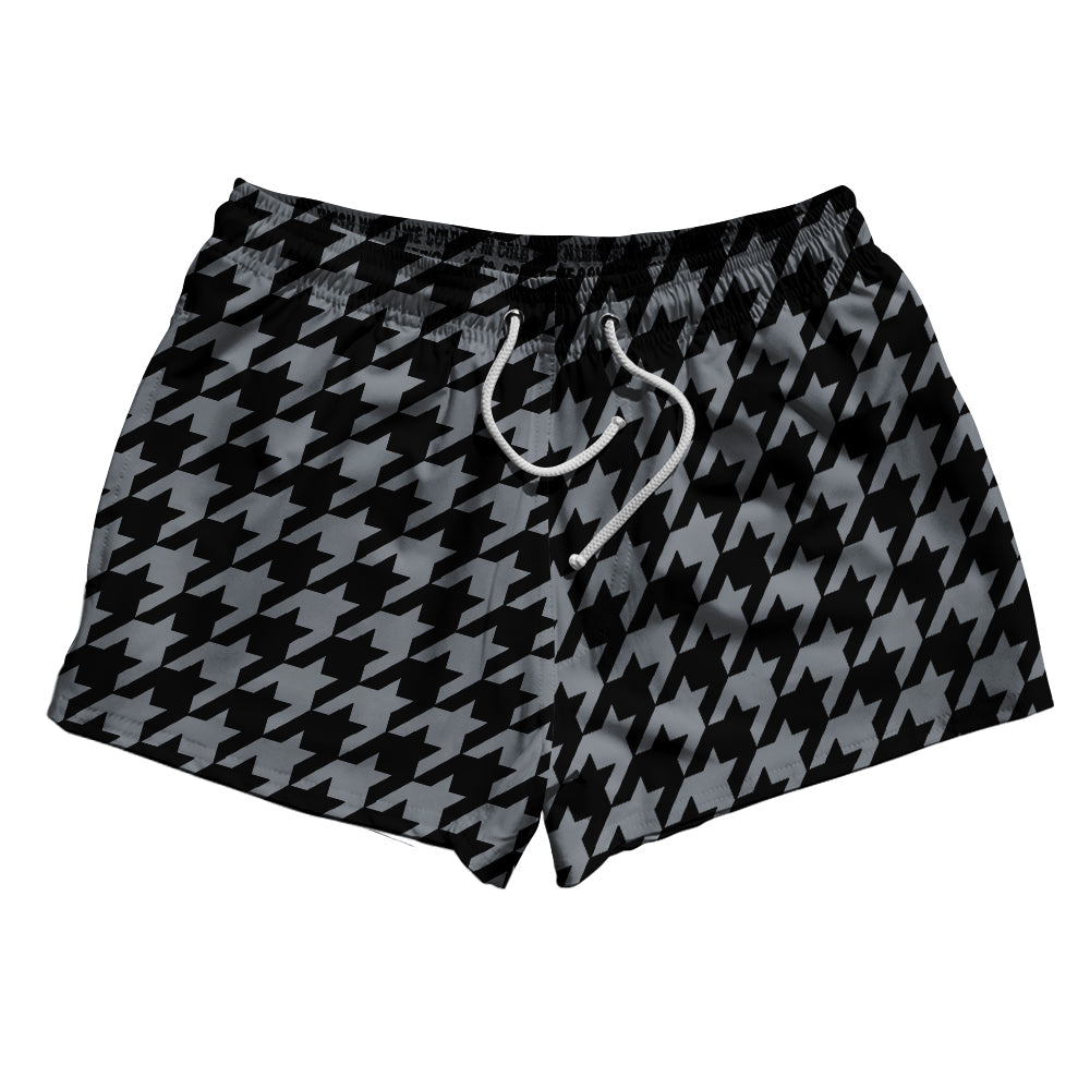 Grey Dark And Black Houndstooth 2.5" Swim Shorts Made In USA