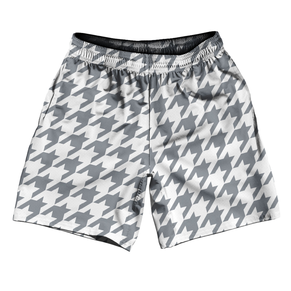 Grey Dark And White Houndstooth Athletic Running Fitness Exercise Shorts 7" Inseam Shorts Made In USA