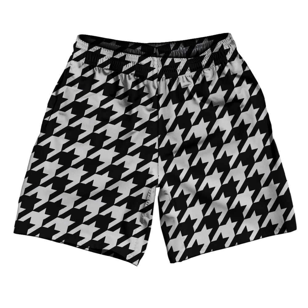Grey Medium And Black Houndstooth Athletic Running Fitness Exercise Shorts 7" Inseam Shorts Made In USA