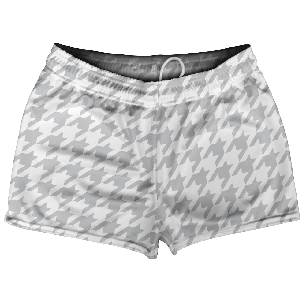 - Grey Medium And White Houndstooth Shorty Short Gym Shorts 2.5" Inseam Made In USA