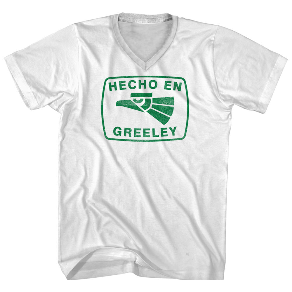 - Hecho En Greeley Eagle Adult Cotton V-neck T-shirt