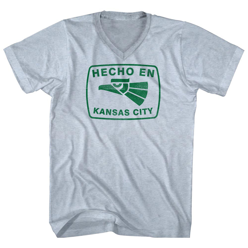 - Hecho En Kansas City Eagle Adult Tri-Blend V-neck T-shirt