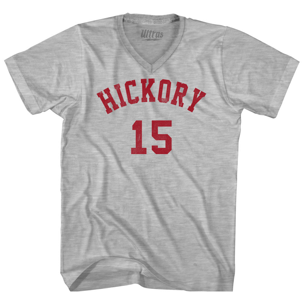 - Hickory 15 Basketball (Distressed Design) Adult Cotton V-neck T-shirt