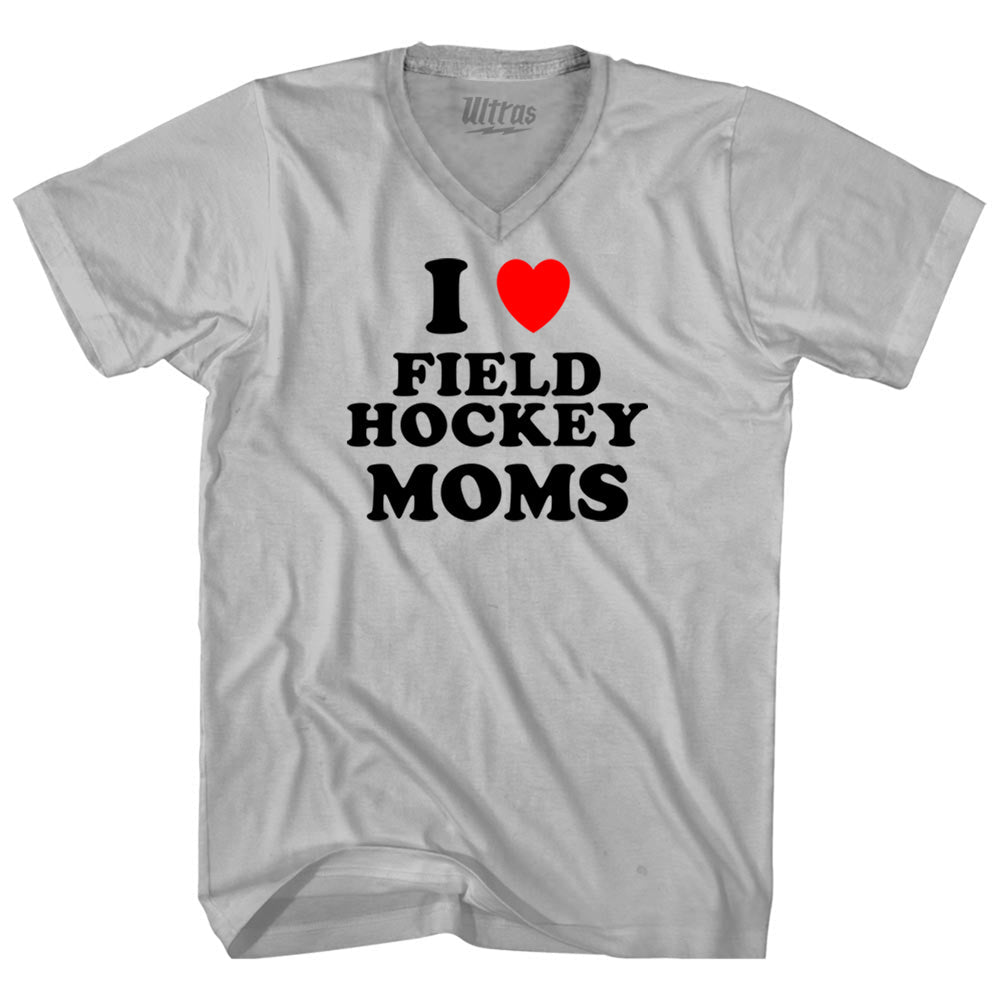 I Love Field Hockey Moms Adult Tri-Blend V-neck T-shirt