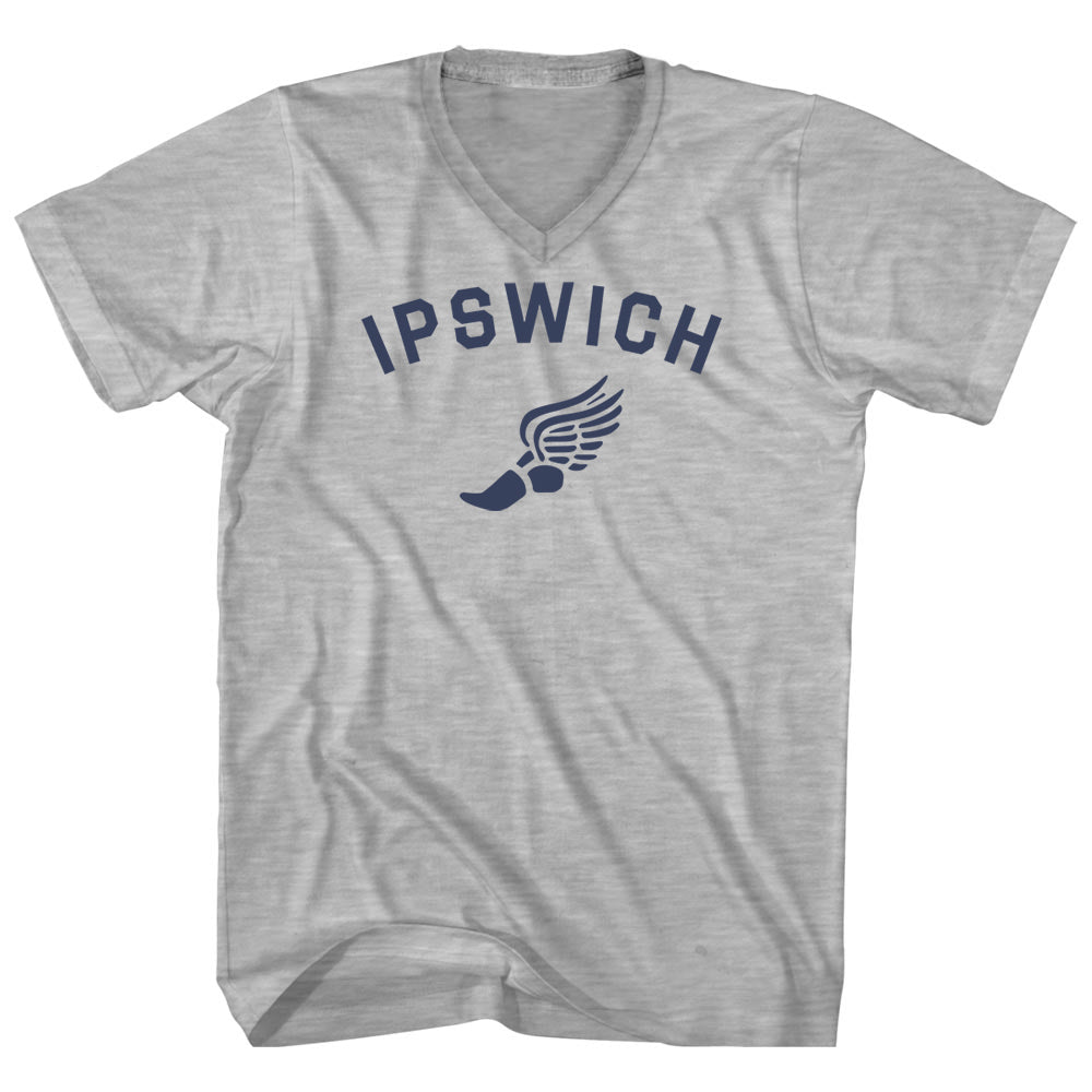 - Ipswich Running Track Winged Foot Adult Cotton V-neck T-shirt