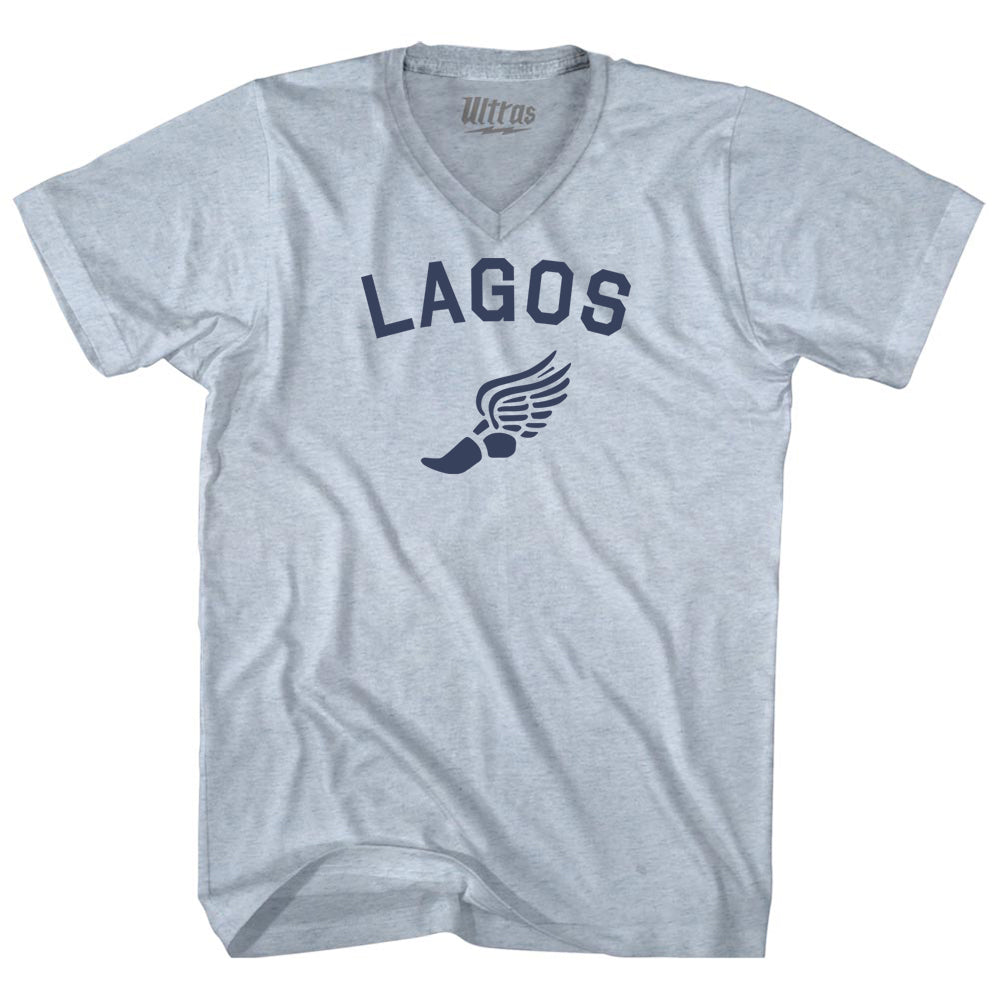 - Lagos Running Track Winged Foot Adult Tri-Blend V-neck T-shirt
