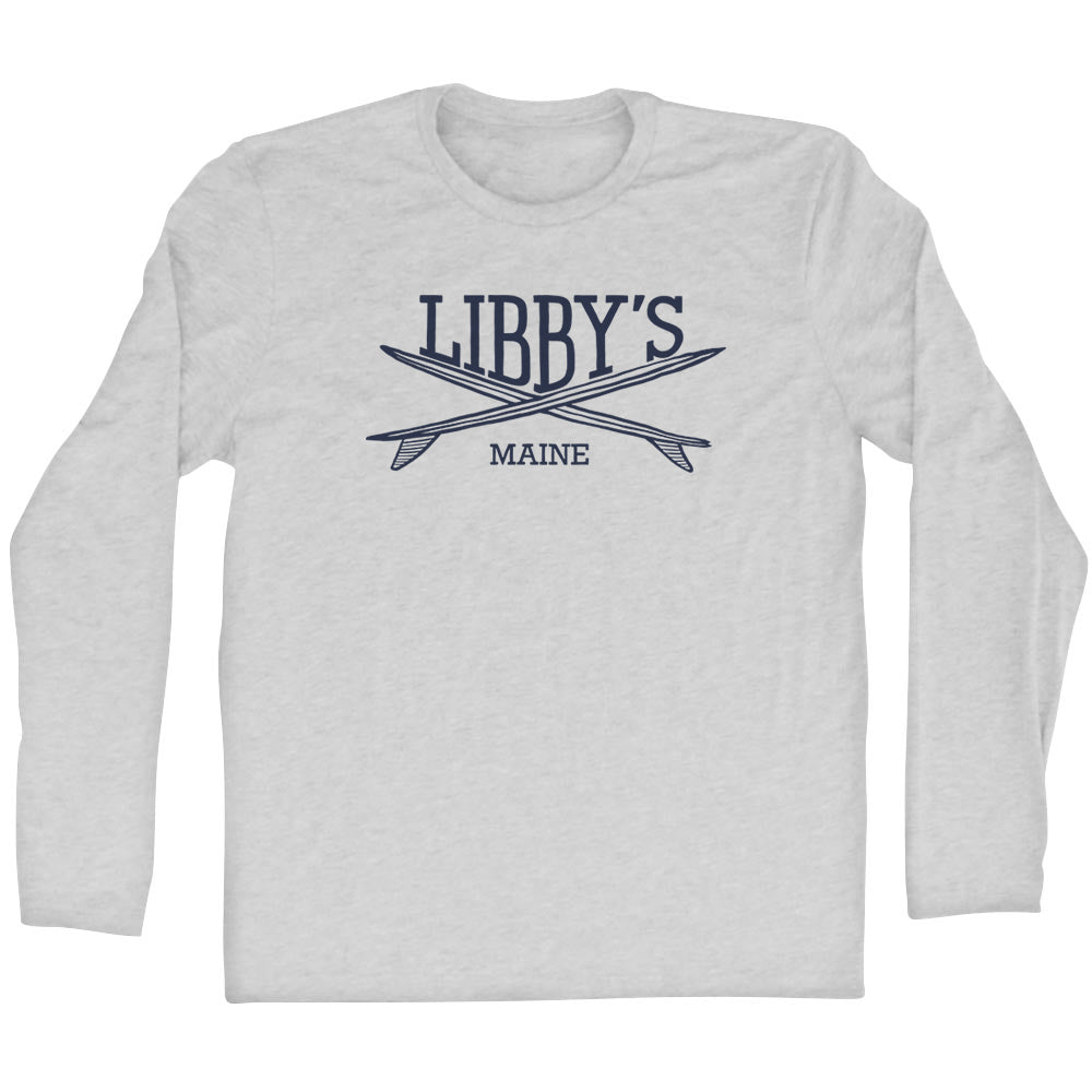 • Libbys Surf Break Crossed Surf Board Surfing Destination Adult Cotton Long Sleeve T-Shirt
