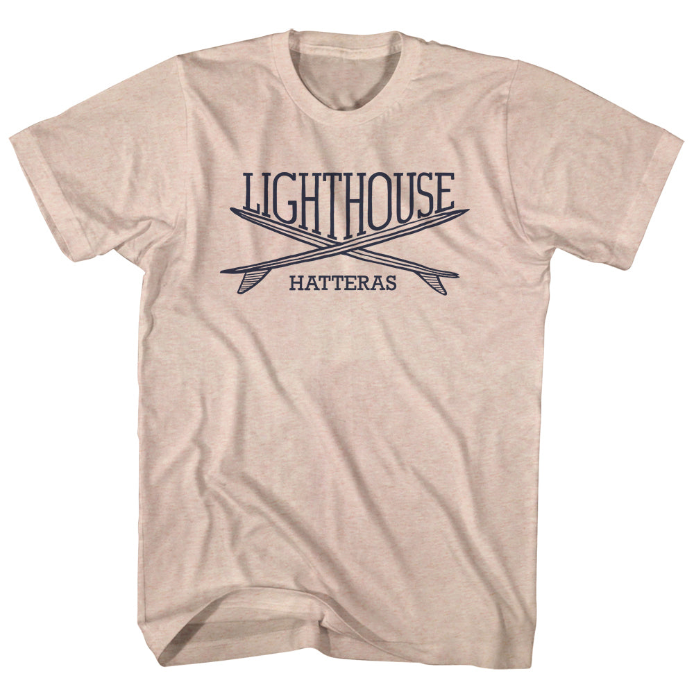 - Lighthouse Surf Break Crossed Surf Board Surfing Destination Adult Tri-Blend T-Shirt
