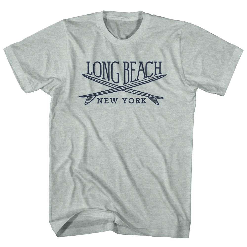 - Long Beach Surf Break Crossed Surf Board Surfing Destination Adult Tri-Blend T-Shirt