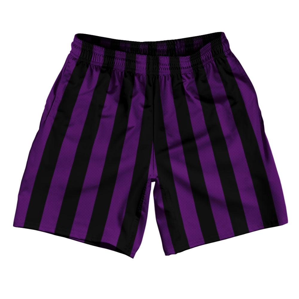 - Medium Purple & Black Vertical Stripe Athletic Running Fitness Exercise Shorts 7" Inseam Shorts Made In USA