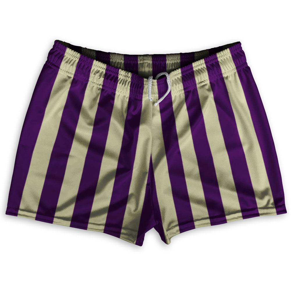 • Medium Purple & Vegas Gold Vertical Stripe Shorty Short Gym Shorts 2.5" Inseam Made In USA