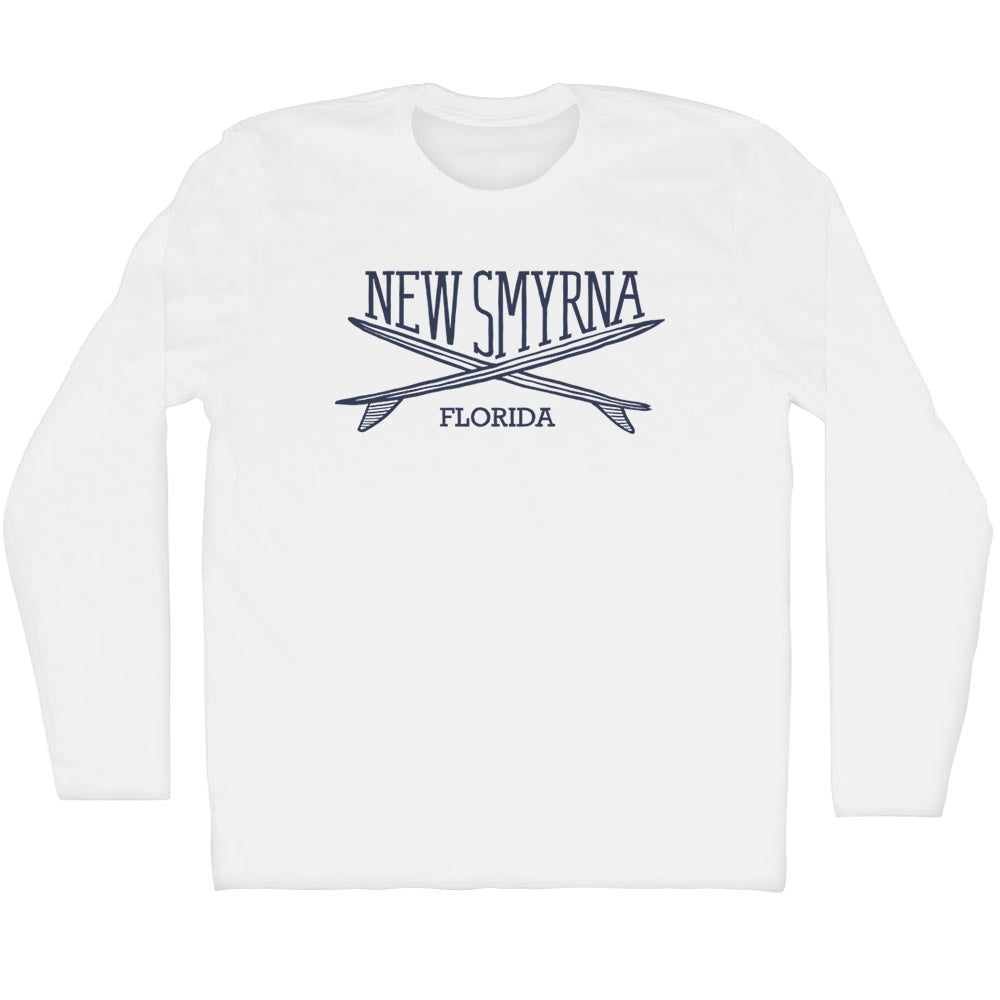 - New Smyrna Surf Break Crossed Surf Board Surfing Destination Adult Cotton Long Sleeve T-Shirt