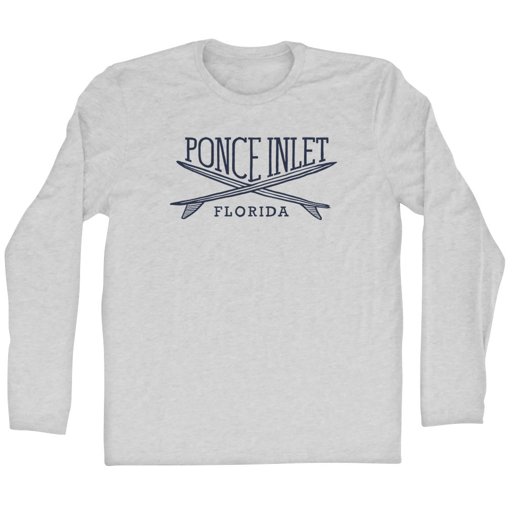 • Ponce Inlet Surf Break Crossed Surf Board Surfing Destination Adult Cotton Long Sleeve T-Shirt