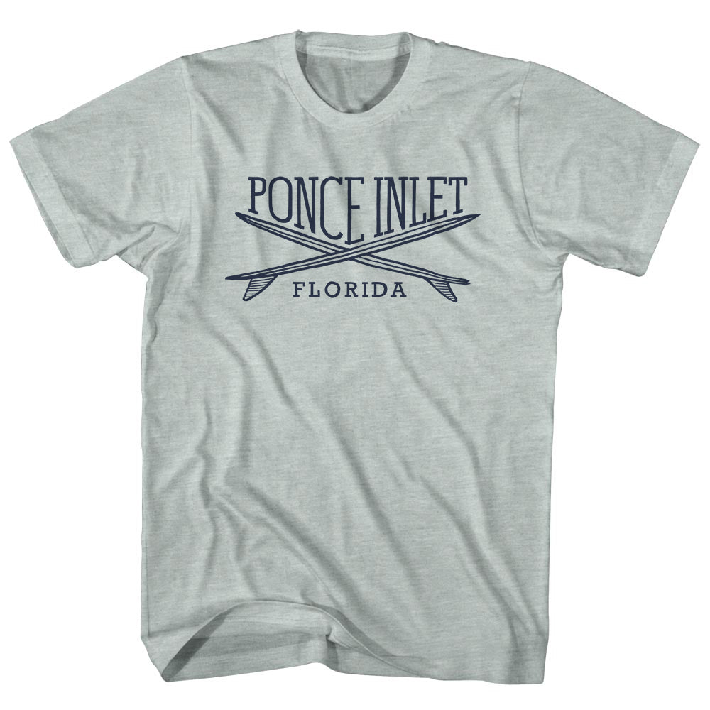 - Ponce Inlet Surf Break Crossed Surf Board Surfing Destination Adult Tri-Blend T-Shirt