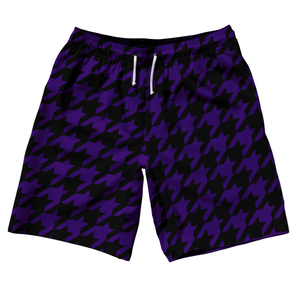 Purple Lakers And Black Houndstooth 10" Swim Shorts Made In USA