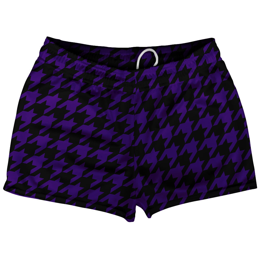 • Purple Lakers And Black Houndstooth Shorty Short Gym Shorts 2.5" Inseam Made In USA