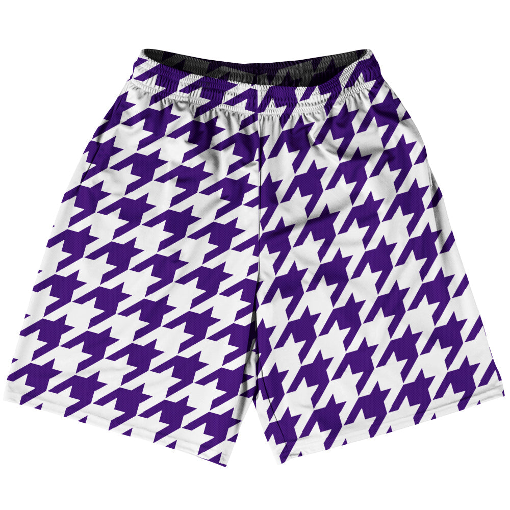 - Purple Lakers And White Houndstooth Basketball Practice Shorts Made In USA