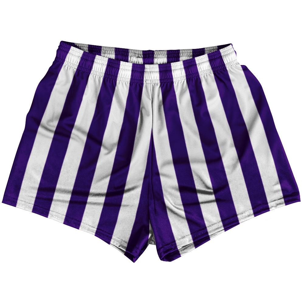 Purple Violet Laker & White Vertical Stripe Womens & Girls Sport Shorts End Made In USA