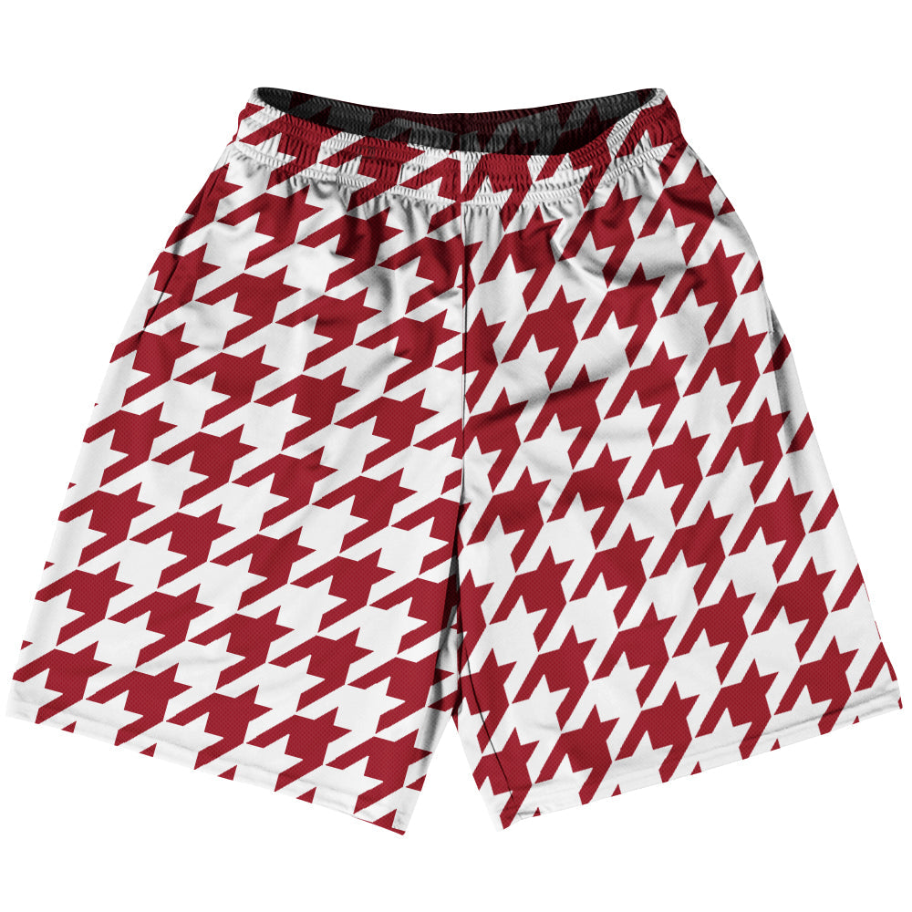 • Red Cardinal And White Houndstooth Basketball Practice Shorts Made In USA