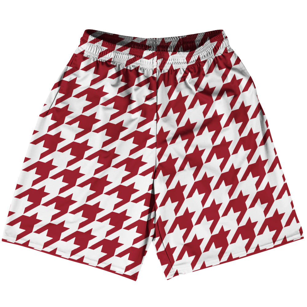 - Red Cardinal And White Houndstooth Lacrosse Shorts Made In USA