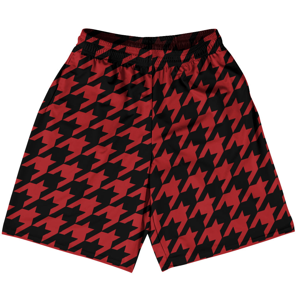 Red Dark And Black Houndstooth Lacrosse Shorts Made In USA