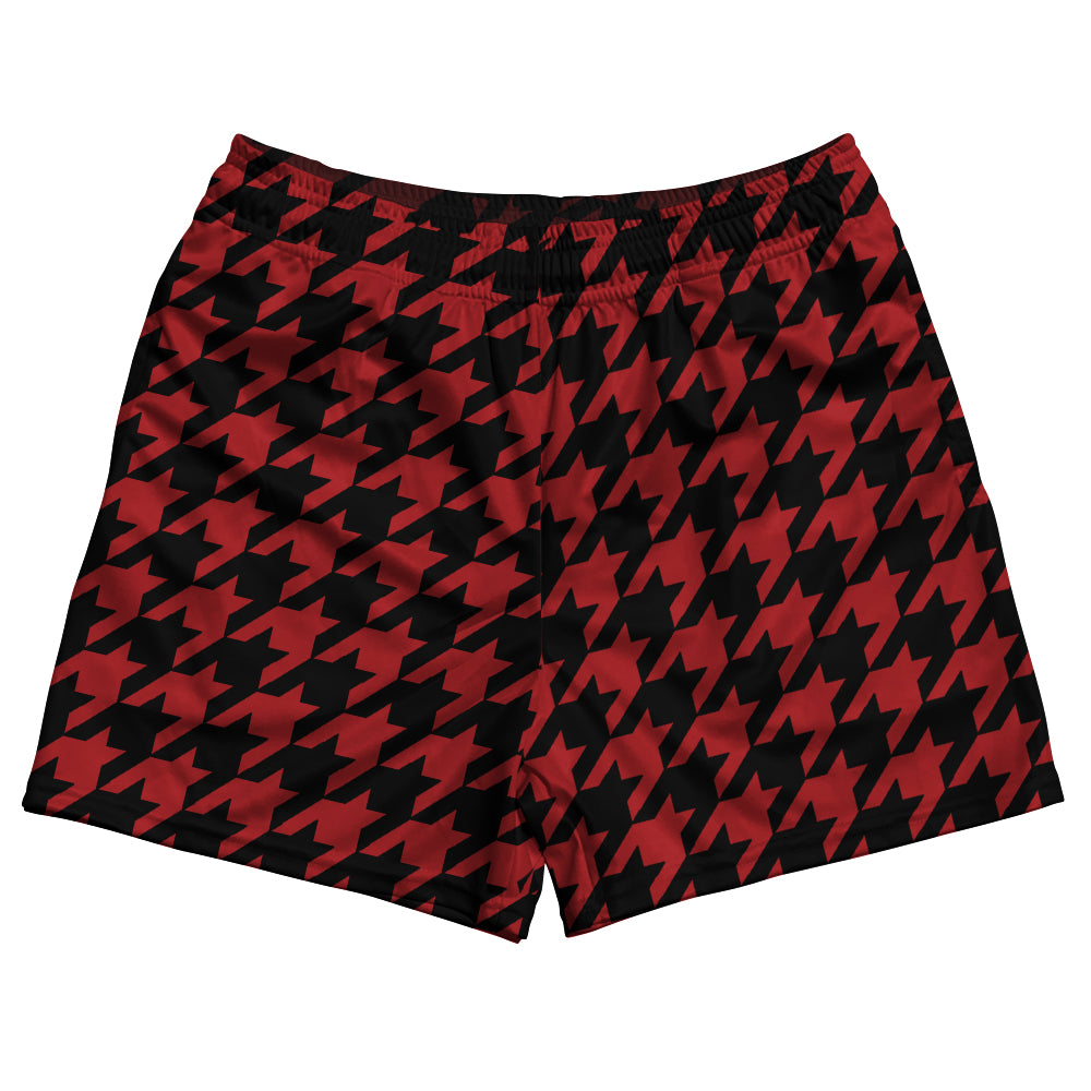 - Red Dark And Black Houndstooth Rugby Shorts Made In USA