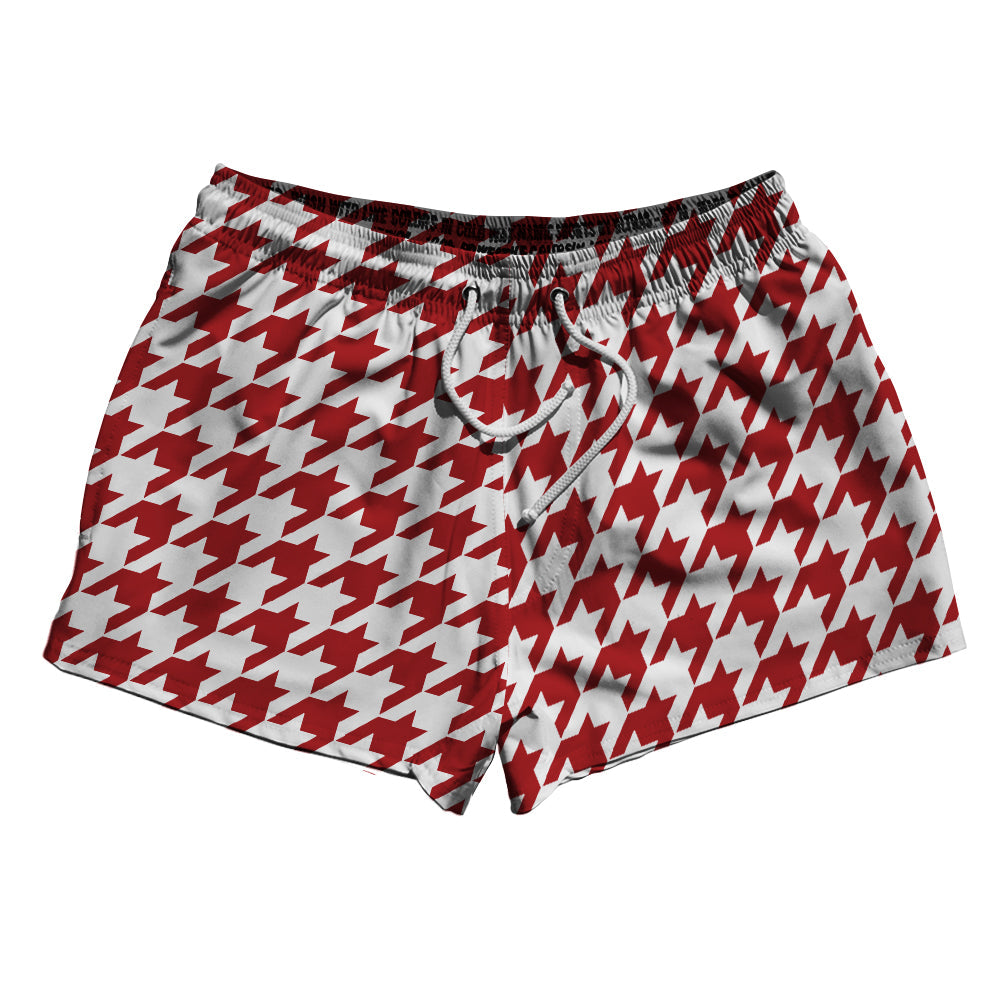 Red Dark And White Houndstooth 2.5" Swim Shorts Made In USA