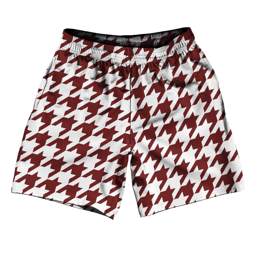 • Red Maroon And White Houndstooth Athletic Running Fitness Exercise Shorts 7" Inseam Shorts Made In USA