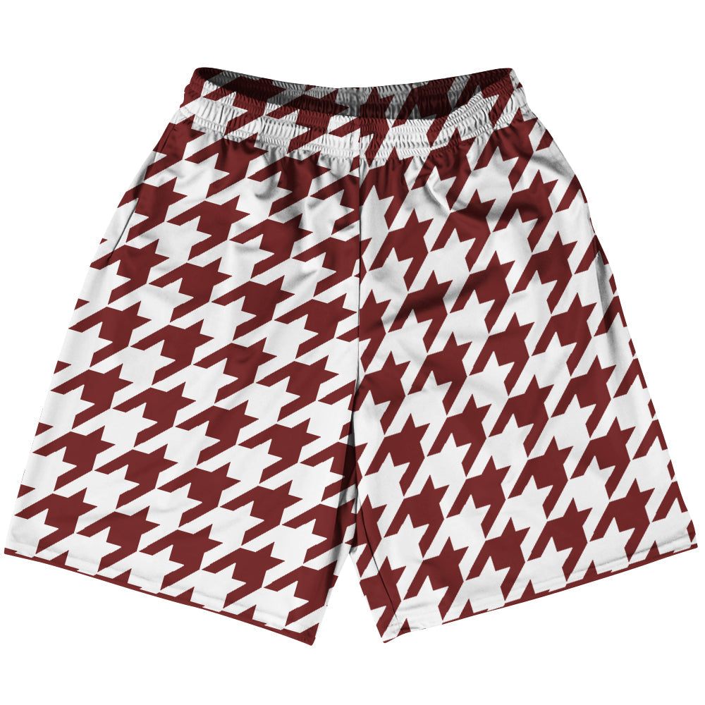 Red Maroon And White Houndstooth Lacrosse Shorts Made In USA