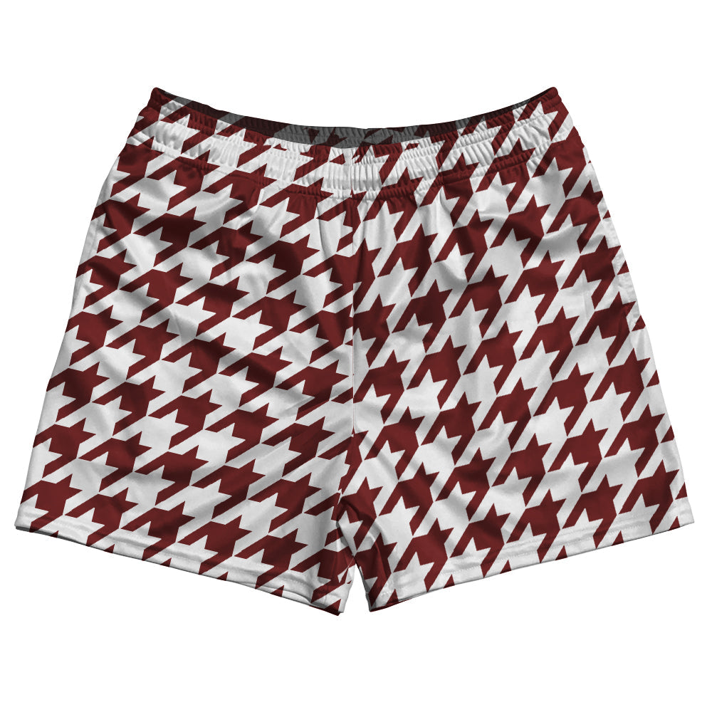 - Red Maroon And White Houndstooth Rugby Shorts Made In USA