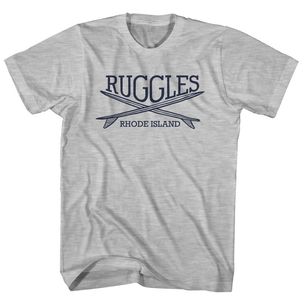 - Ruggles Surf Break Crossed Surf Board Surfing Destination Adult Cotton T-Shirt
