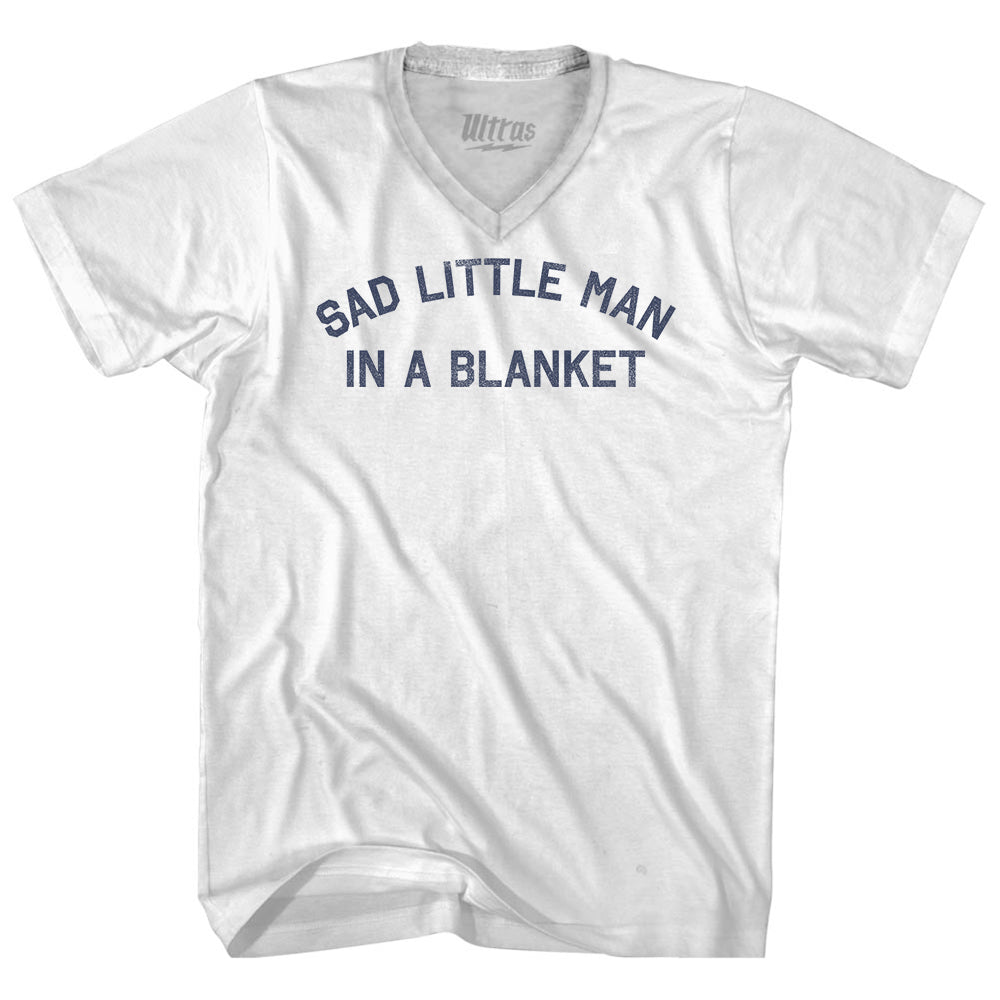 - Sad little man in a blanket Adult Tri-Blend V-neck T-shirt