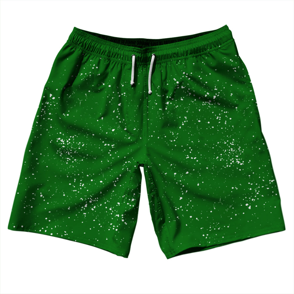 - Super Fly Pattern Green Kelly and White 10" Swim Shorts Made in USA