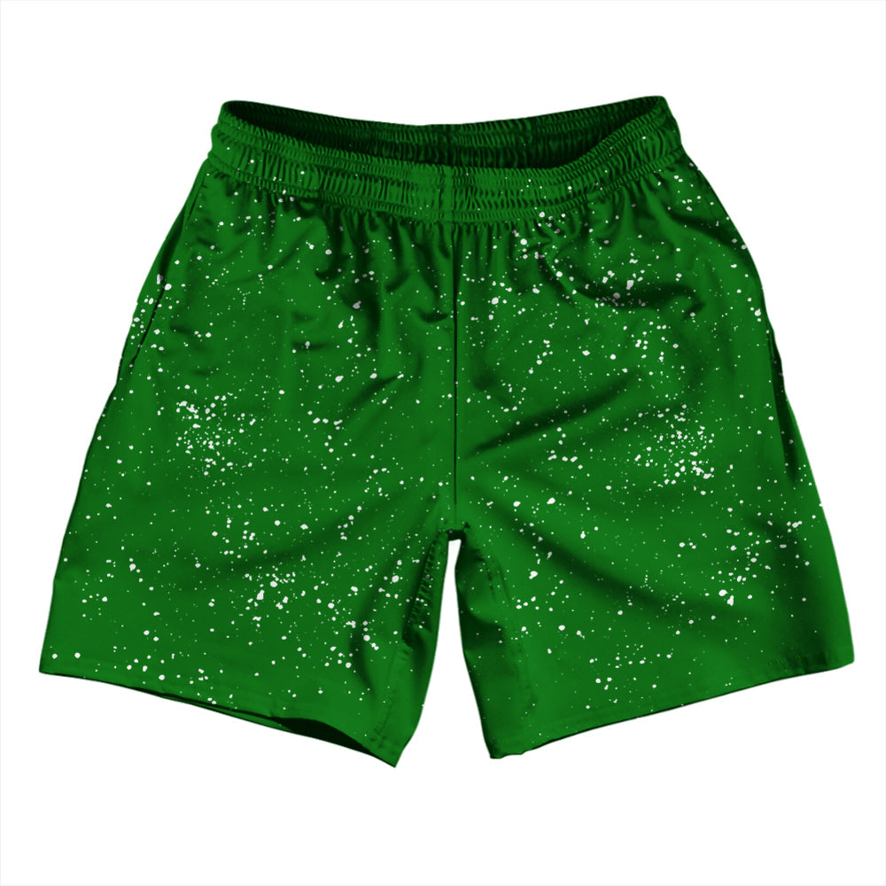 Super Fly Pattern Green Kelly and White Athletic Running Fitness Exercise Shorts 7" Inseam Shorts Made In USA