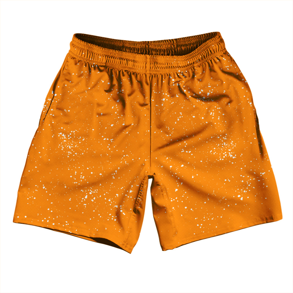 Super Fly Pattern Orange Tennessee and White Athletic Running Fitness Exercise Shorts 7" Inseam Shorts Made In USA